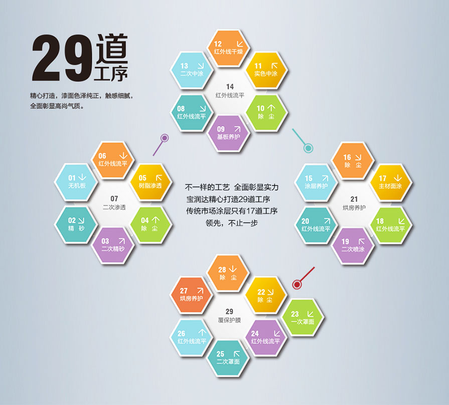 色彩統(tǒng)一 寶潤達擁有系統(tǒng)化的色彩控制方案 完美的原材料供應保障 40噸單缸產能 專業(yè)化的產品涂裝技術 |