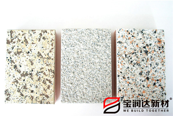寶潤達(dá)一體板飾面層采用真石漆,多彩漆,水包水,水包砂,乳膠漆,實色/金屬氟碳超3000種顏色定制,可根據(jù)石材定做樣品