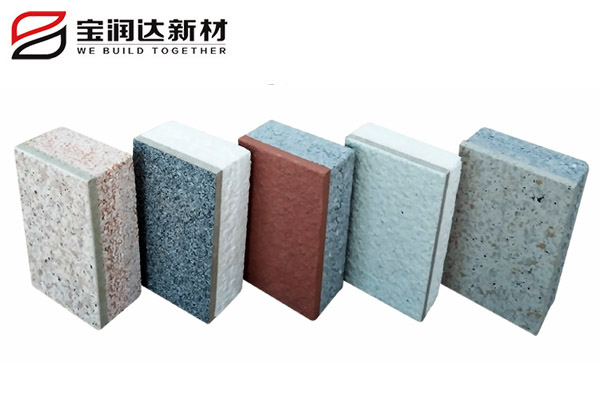 寶潤達一體板飾面層采用真石漆,多彩漆,水包水,水包砂,乳膠漆,實色/金屬氟碳超3000種顏色定制,可根據石材定做樣品